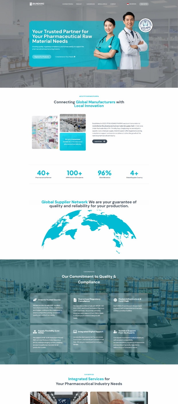 PT BUN DANG PHARMA adalah pemasok bahan baku farmasi Indonesia yang didirikan pada tahun 2023, bertindak sebagai integrator rantai pasok strategis, bukan sekadar pedagang.